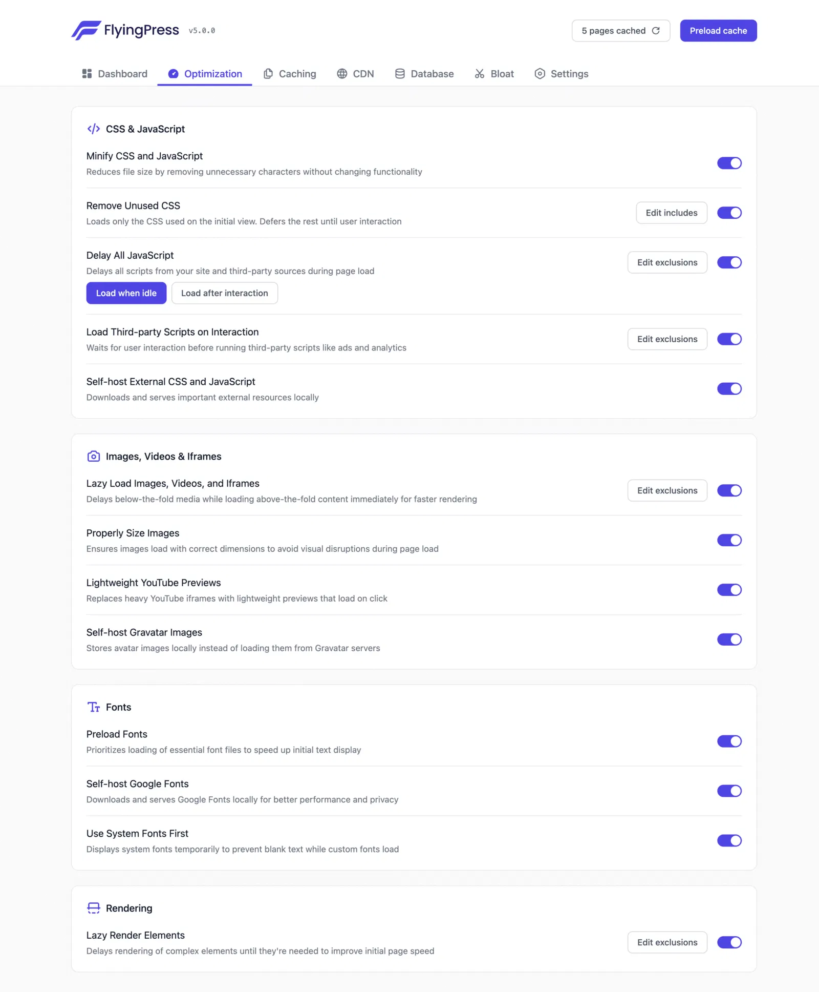 In short, FlyingPress v5 means less work for you and faster loading times for your site, all of which is handled automatically.