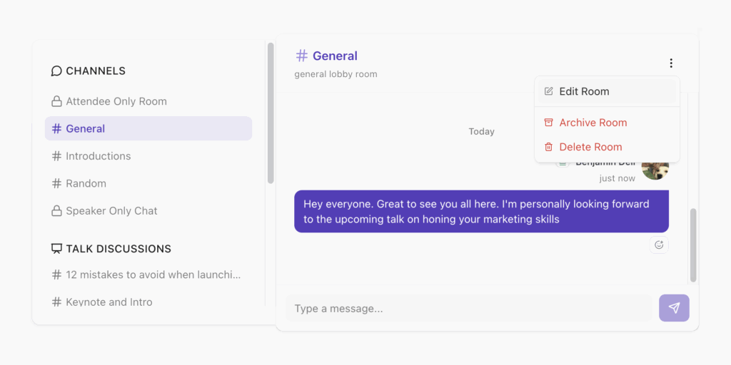 Private chat inboxes for speakers allow attendees to engage directly with speakers via a dedicated chat button on the speaker’s page. Event organizers can enable this option for each speaker on an individual basis, ensuring a tailored and respectful approach to speaker preferences.