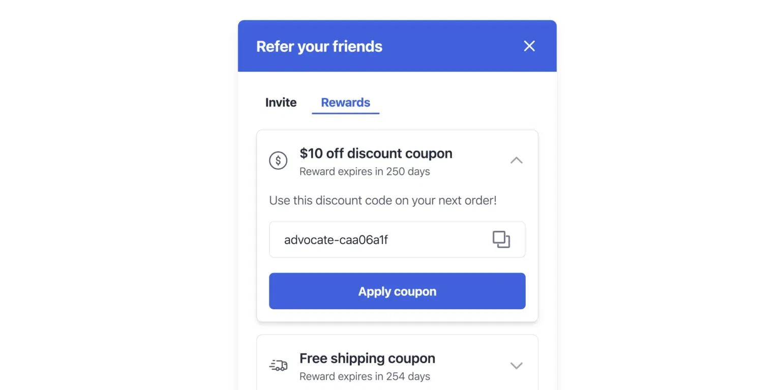 The platform is unique in that it automatically enrolls customers into the referral program after their first purchase, eliminating any unnecessary sign-up steps. The easy-to-use Invite tab allows customers to easily share their unique referral links via social media or email, while the Rewards tab provides a clear overview of earned rewards and easy redemption options.