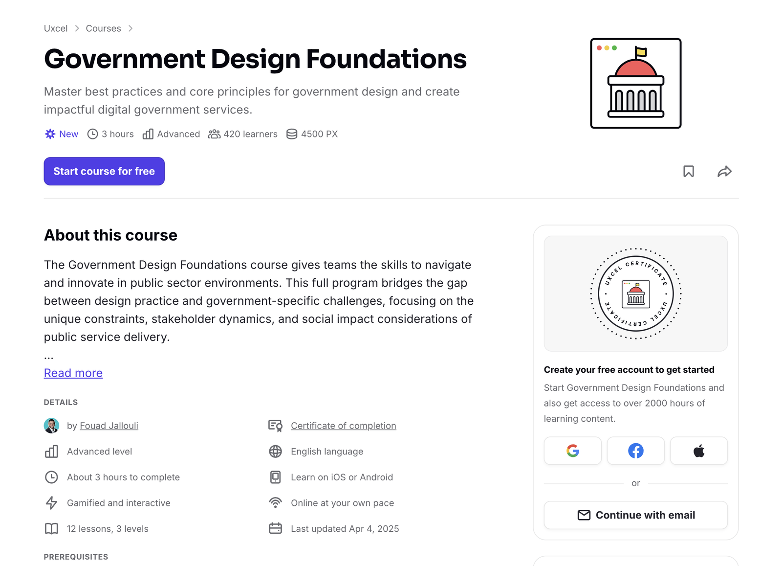 Uxcel has just released the new Government Design Foundations online course. It will help you learn best practices and core principles for public sector innovation and create impactful digital government services.