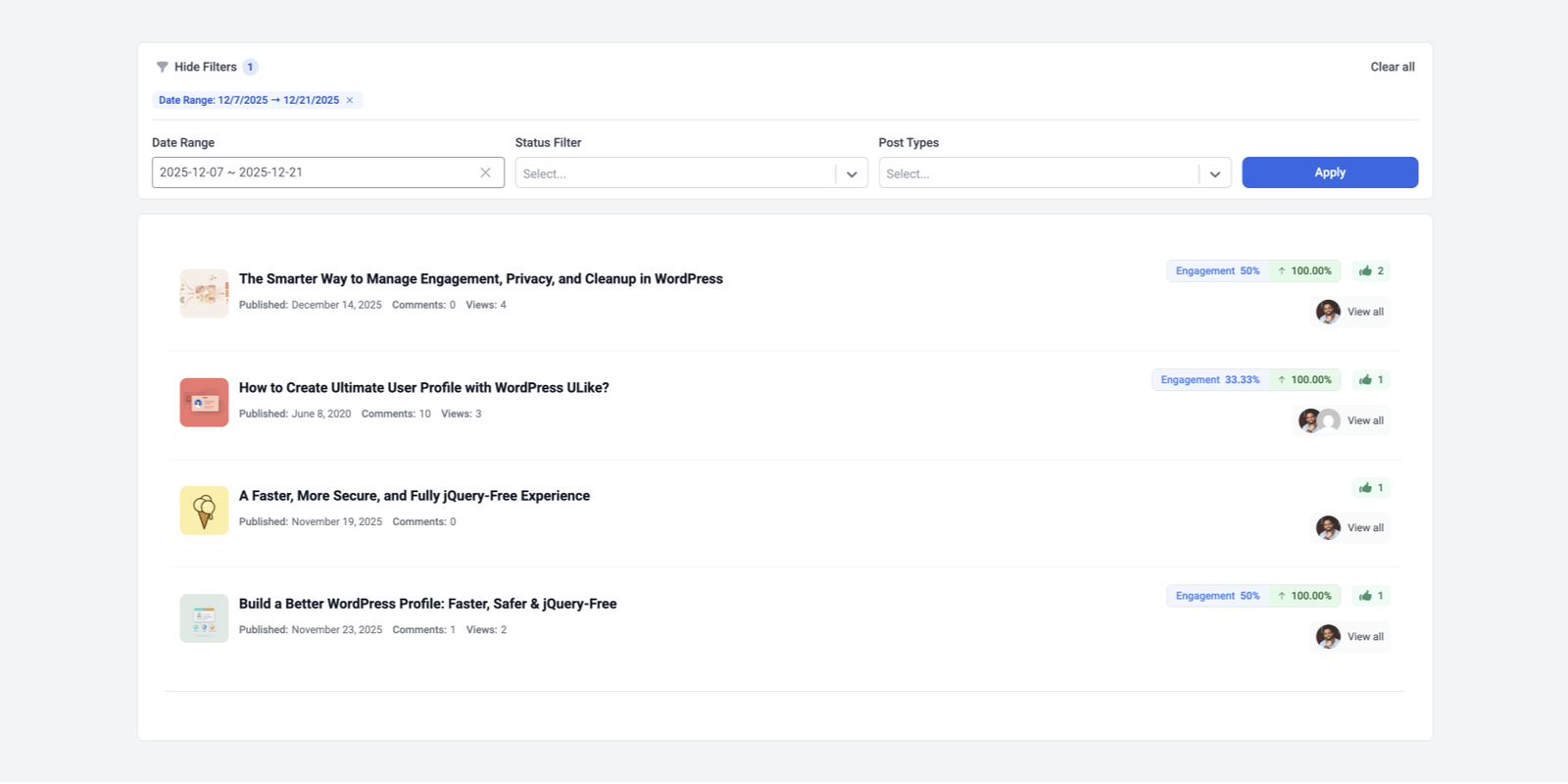 WP ULike Rolls Out Engagement Rate Analytics